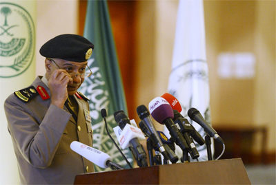 Người phát ngôn Bộ Nội vụ A-rập Xê-út tại cuộc họp báo ở Ri-át đã cáo buộc I-ran có "liên quan trực tiếp" đến nhóm gián điệp. Ảnh: Roi-tơ