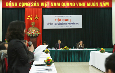 QĐND Online – Sáng 28-2, Bộ GD và ĐT đã tổ chức Hội nghị góp ý Dự thảo sửa đổi Hiến pháp năm 1992, do Thứ trưởng Bộ GD và ĐT Phạm Mạnh Hùng chủ trì.