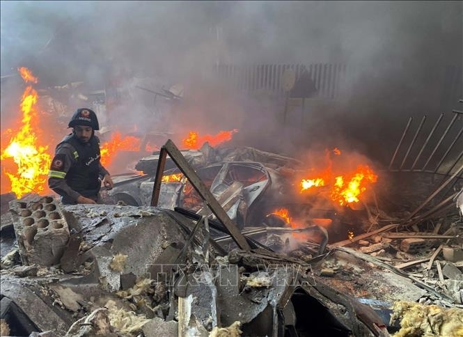 | Sau thỏa thuận ngừng bắn Mỹ - Iran, tiếng súng vẫn vang lên ở khu vực Trung Đông. Trong ảnh: Hiện trường đổ nát sau vụ không kích của Israel xuống thủ đô Beirut, Lebanon ngày 8-4. |