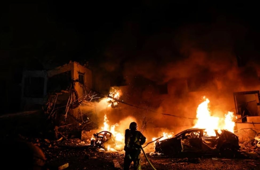 Hiện trường một vụ cháy sau khi Iran phóng tên lửa vào Tel Aviv, Israel, ngày 28-2. Ảnh: Reuters