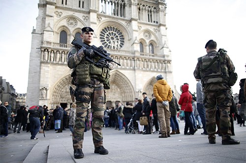 Bảo đảm an ninh tại khu vực tập trung đông người ở Pa-ri. Ảnh: Reuters