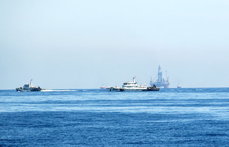 | Giàn khoan Hải dương 981 của Trung Quốc hạ đặt trái phép tại vùng biển Hoàng Sa của Việt Nam bị dự luận thế giới phản đối. Ảnh: Mạnh Thắng. |