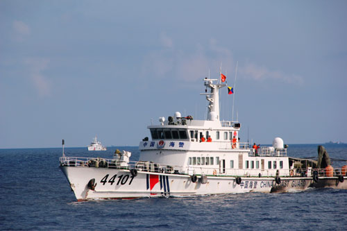 | Tàu Trung Quốc hoạt động trái phép trên vùng biển Hoàng Sa của Việt Nam vào ngày 28-5-2014. Ảnh: Mạnh Thắng. |