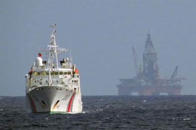 Tàu hải cảnh 3383 được cho là sở chỉ huy của lực lượng tàu hộ tống giàn khoan trái phép Hải Dương-981. Ảnh: thanhnien.com.vn