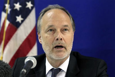 Đại sứ Mỹ Giêm Cun-ning-ham tại Ca-bun hôm 13-8. Ảnh: Roi-tơ