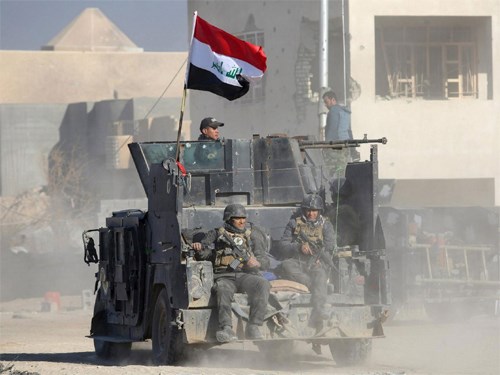 Các binh sĩ I-rắc trở về căn cứ sau một chiến thắng quan trọng trước tổ chức khủng bố IS. Ảnh: Reuters