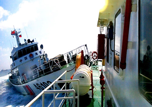 Nhiều tàu kiểm ngư và cảnh sát biển Việt Nam bị tàu Trung Quốc đâm thẳng vào mạn trong lúc làm nhiệm vụ tuyên truyền, yêu cầu Trung Quốc rút giàn khoan Hải Dương 981 cùng tàu hộ tống ra khỏi vùng đặc quyền kinh tế của Việt Nam. Ảnh: vnexpress.vn.