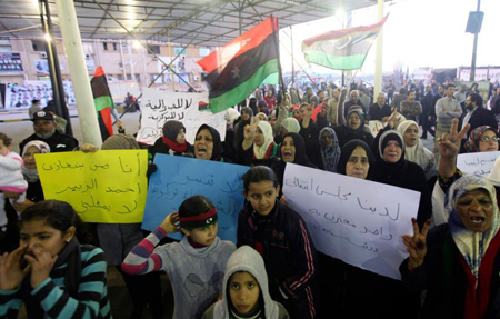 Người dân Li-bi biểu tình phản đối thành lập nhà nước liên bang ở Ben-ga-di hôm 6-3. Ảnh: Roi-tơ.