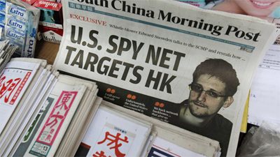 Ét-uốt Xnâu-đân trên trang bìa tờ Bưu điện Hoa Nam buổi sáng. Ảnh: AP