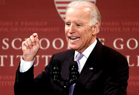 Phó tổng thống Mỹ G.Bai-đân phát biểu tại Đại học Harvard. Ảnh: AP