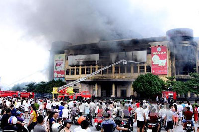 | Vụ cháy Trung tâm Thương mại Hải Dương ngày 15-9. Ảnh: TTXVN |