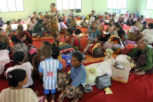 Người dân bang Ra-khi-nê mất nhà cửa phải sống trong trại tị nạn ở Myauk Oo. Ảnh: AP