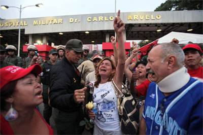 | Rất nhiều người khóc thương ông Chavez ngay trước cổng quân y viện nơi ông Chavez từ trần. Ảnh: BBC |