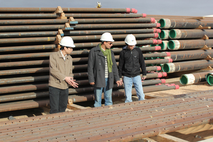 Các cán bộ PVEP kiểm tra các thiết bị phục vụ khoan thăm dò dầu khí ở sa mạc Xa-ha-ra, An-giê-ri. Ảnh: Đỗ Kim Anh