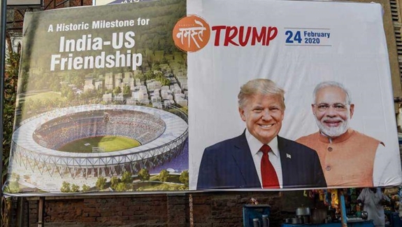 Hình ảnh Tổng thống Donald Trump và Thủ tướng Narendra Modi trên đường phố Ấn Độ trước thềm chuyến thăm. Ảnh: AFP |