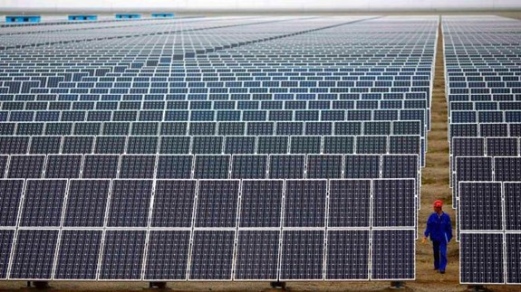Một trang trại sản xuất tấm pin năng lượng mặt trời ở Trung Quốc. Ảnh: Reuters