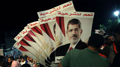 Những người ủng hộ ông Morsi trong một cuộc biểu tình tại Cairo. Ảnh: AP.