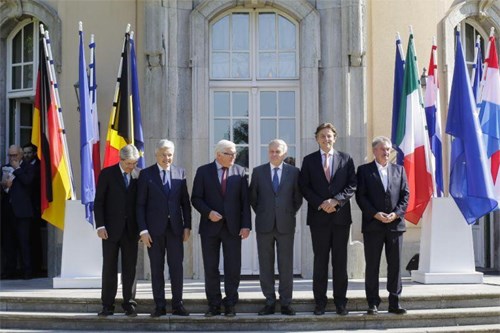Ngoại trưởng 6 nước sáng lập Liên minh châu Âu chụp ảnh trước khi bước vào cuộc họp. Ảnh: AP