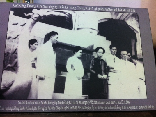 đã nhuốm màu thời gian của gia đình cụ là tấm ảnh chụp tại Nhà hát Lớn trong Tuần lễ Vàng lịch sử. Nhớ tỉ mỉ tới từng chi tiết, cụ chỉ từng người trong ảnh, nói: “Đây là chồng tôi-ông Trịnh Văn Bô; còn đây là mẹ chồng tôi (cụ Phan Thị Ngọc); bên cạnh là ông Phạm Văn Đồng và nhà tư sản Nguyễn Hữu Tiệp". Nhớ lại chặng đường đến với cách mạng, cụ kể: “Cuối năm 1944, qua ông Khuất Duy Tiến, gia đình tôi tham gia Việt Minh. Khi ấy, ông Khuất Duy Tiến bộc bạch, quỹ Việt Minh bỏ ra 5 xu để mua báo cũng khó. Vì thế, tôi đã bán ngay 16 hòm tơ bóng và xuất thêm ngân quỹ của nhà. Tính đến trước Cách mạng Tháng Tám, gia đình tôi đã ủng hộ 8,5 vạn đồng Đông Dương, tương đương 212,5 lượng vàng theo thời giá bấy giờ. Sau Cách mạng Tháng Tám, gia đình tôi được ông Khuất Duy Tiến tiến cử vào Ban vận động Quỹ Độc lập. Tôi đã tiếp tục ủng hộ Quỹ Độc lập 20 vạn đồng, tương đương 500 lượng vàng. Ngoài ra, còn vận động thêm được hơn một triệu đồng Đông Dương cho quỹ. Trong Tuần lễ Vàng, gia đình tôi đã đóng góp 117 lượng vàng và vận động ủng hộ thêm hơn 1000 lượng vàng nữa. Cộng lại, gia đình nhà tôi ủng hộ cách mạng 5.147 lượng vàng, chiếm hơn 90% tài sản mà gia đình tôi tích lũy được”.