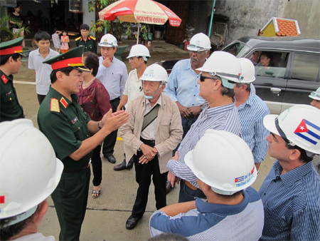 | Trung tướng Võ Văn Tuấn trao đổi với các tư vấn giám sát tại công trường. |