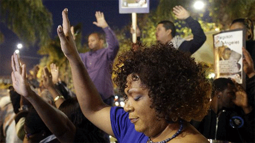 | Biểu tình tại Lốt An-giơ-lét phản đối phán quyết của bồi thẩm đoàn hạt Xanh Lu-ít. |