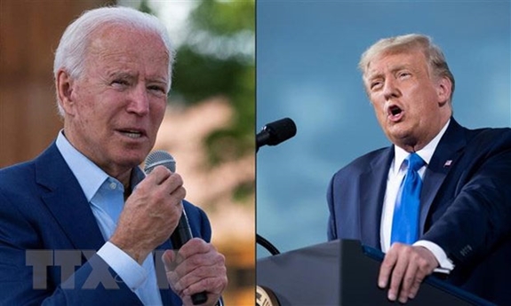 Tổng thống Mỹ đương nhiệm Donald Trump (phải) và ứng viên Tổng thống đảng Dân chủ Joe Biden. Ảnh: TTXVN.