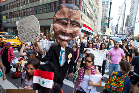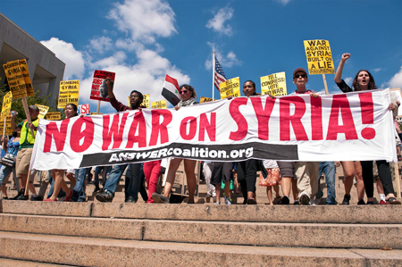 Cuối tuần qua, tại Mỹ và nhiều nơi trên thế giới đã diễn ra các cuộc biểu tình khá rầm rộ để phản đối tấn công quân sự Xy-ri. Khoảng 200 người biểu tình với rất nhiều băng rôn khẩu hiệu đã tập trung trước cổng Nhà Trắng và tuần hành tới trụ sở Quốc hội Mỹ để phản đối kế hoạch tấn công Xy-ri của chính quyền Tổng thống B.Ô-ba-ma. Những người biểu tình yêu cầu Quốc hội Mỹ không cho phép đánh Xy-ri. Các biểu ngữ phản đối còn cáo buộc “chiến tranh chống Xy-ri dựa trên cơ sở dối trá”. Cô Mê-đê-a Ben-gia-min (Medea Benjamin), sáng lập nhóm phản chiến Code Pink trả lời trên AP rằng: “Chúng tôi không muốn thêm một cuộc chiến khác”. Trên các đường phố ở Niu Y-oóc, người biểu tình cũng giương cao các biểu ngữ kêu gọi không được có thêm các cuộc chiến tranh vì lợi ích của các tập đoàn và “cắt giảm Lầu Năm góc, không cắt giảm tem phiếu thực phẩm”. Các cuộc biểu tình với quy mô vài trăm người cũng diễn ra ở In-đi-a-na-pô-lít, Lu-xi-a-na, Mi-chi-gân, Bô-xtơn.
