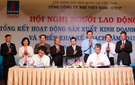 QĐND - Năm 2012, nền kinh tế thế giới cũng như trong nước còn nhiều khó khăn, sản lượng khí cấp của các mỏ thuộc hệ thống khí Cửu Long tiếp tục suy giảm theo thời gian khai thác, các hộ điện tiêu thụ khí thất thường và ở mức thấp... Song, Tổng công ty Khí Việt Nam - CTCP (PV Gas) đã nắm bắt đúng thời cơ, tận dụng tốt những cơ hội, phát huy sức mạnh tập thể nên PV Gas đã hoàn thành vượt mức hầu hết các chỉ tiêu kế hoạch, đặc biệt một số chỉ tiêu đã về đích trước thời hạn từ 2 đến 4 tháng.