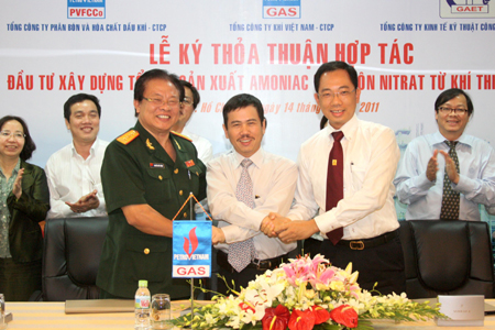 Lãnh đạo Tổng công ty PV Gas ký hợp tác sản xuất Amoniac với các đối tác. Ảnh: Nam Anh