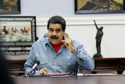 Tổng thống N.Ma-đu-rô ban bố tình trạng khẩn cấp trong phiên họp nội các tại Ca-ra-cát ngày 13-5. Ảnh: EPA