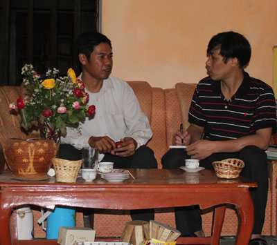 | Đặng Ngọc Quyết, chủ doanh nghiệp xuất nhập khẩu mây tre đan trao đổi với phóng viên |