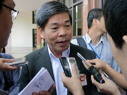 Bộ trưởng Bộ Tài nguyên và Môi trường Nguyễn Minh Quang trả lời phỏng vấn phóng viên báo chí. Ảnh: Chiến Thắng.