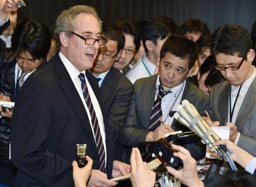 Đại diện Thương mại Mỹ Mai-cơn Phro-man trả lời phỏng vấn báo chí. Ảnh: AP.