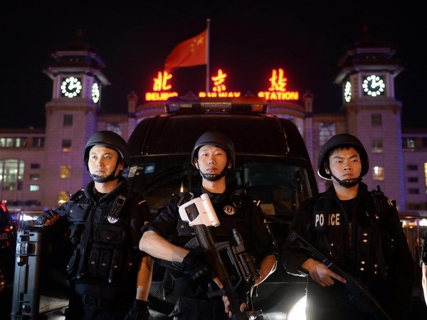 | Cảnh sát Bắc Kinh diễn tập chống khủng bố tại nhà ga Bắc Kinh. Ảnh: Xinhua |