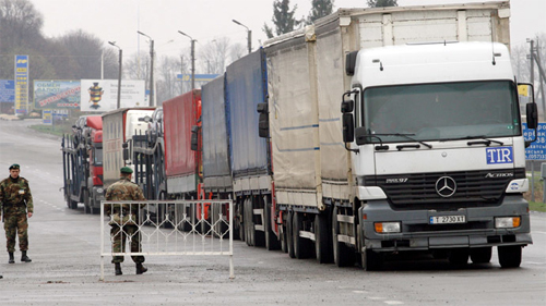 | Xe chở hàng hóa lưu thông qua biên giới Nga-U-crai-na. Ảnh: Ria Novosti |