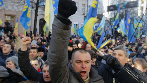 Người biểu tình chống Chính phủ Ukraine trên đường phố thủ đô Kiev. Nguồn: Reuters