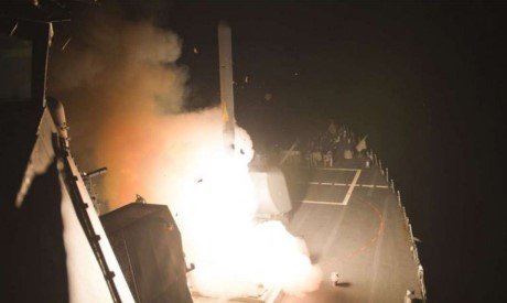Khoảng 60 tên lửa hành trình Tomahawk đã được quân đội Mỹ phóng nhằm vào một sân bay quân sự nằm gần thành phố Hôm-xơ (Homs), phía Tây Xy-ri. Phát biểu tại khu nghỉ dưỡng Mar-a-Lago ở bang Phlo-ri-đa (Floria), Tổng thống Mỹ Đ.Trăm xác nhận thông tin này. Ông Đ.Trăm gọi đây là một “cuộc tấn công quân sự có chủ đích”. Bởi theo ông Trăm, sân bay quân sự ở Hôm-xơ chính là nơi bắt nguồn của vụ tấn công hóa học xảy ra đầu tuần này. Ông Trăm đã mô tả cuộc tấn công bằng tên lửa Tomahawk là động thái để bảo vệ “lợi ích an ninh quốc gia cốt yếu” của Mỹ.