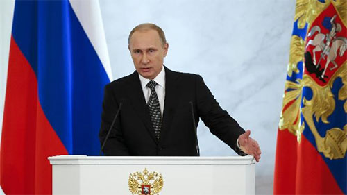 Tổng thống Nga V.Pu-tin đọc Thông điệp Liên bang năm 2014. Ảnh: AP
