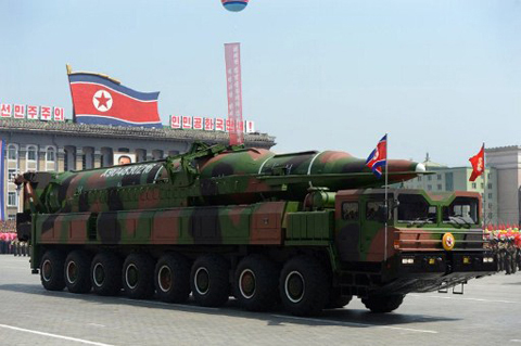 Một xe chở tên lửa tham gia lễ duyệt binh kỷ niệm 100 năm ngày sinh cố chủ tịch Kim Nhật Thành. Ảnh: AFP
