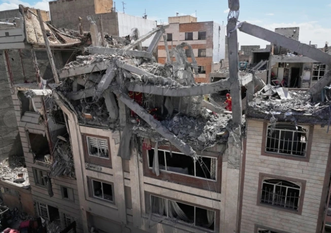Hiện trường đổ nát sau một cuộc tấn công của Mỹ vào Iran. Ảnh: AP