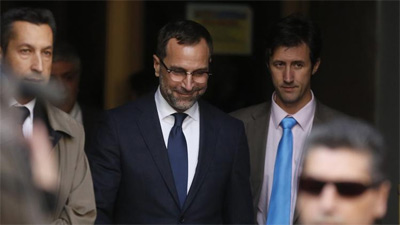 Đại sứ Mỹ Giêm Cô-xtốt (James Kostos) rời Bộ Ngoại giao Tây Ban Nha ngày 28-10. Ảnh: Roi-tơ
