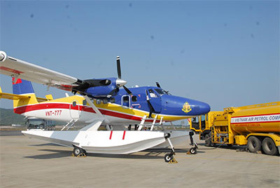 Chiếc thủy phi cơ DHC-6, số hiệu VNT 777 của Quân chủng Hải quân chuẩn bị tham gia công tác tìm kiếm cứu nạn. Ảnh: Trọng Thiết.