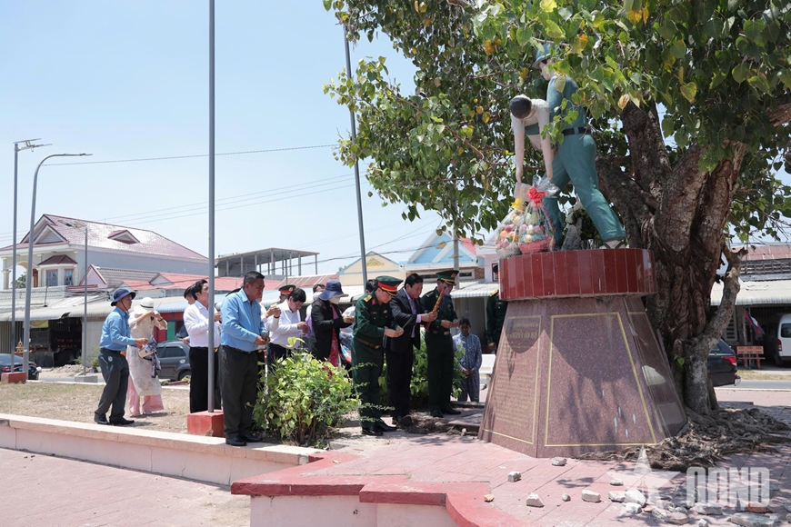 | Đoàn công tác dâng hương tại tượng Anh hùng, liệt sĩ Nguyễn Văn Ngộ - người con ưu tú của tỉnh Tây Ninh hy sinh tại Campuchia. |