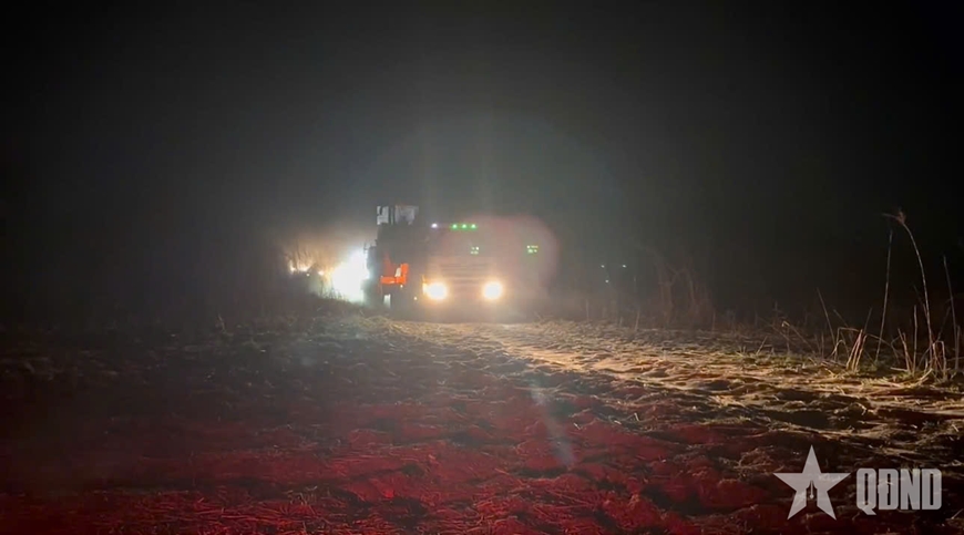 Cùng thời điểm đó, một mũi công tác khác đối mặt với thử thách cam go không kém: Vận chuyển trang thiết bị hạng nặng vào thẳng vùng tâm chấn xung đột. Dưới màn đêm đặc quánh, đội hình cơ động của lính thợ Việt Nam đã khẩn trương phối hợp cùng các đơn vị bạn tiếp nhận xe rơ-moóc và máy xúc từ Sở chỉ huy Phái bộ, lập tức hành quân hướng về tuyến lửa Rumamier - Abiemnhom.