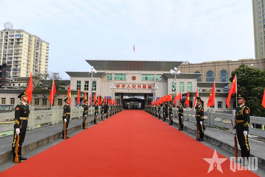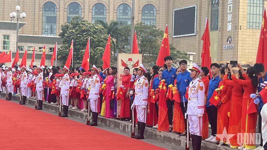 Từ sáng sớm, tại khu vực Cửa khẩu Quốc tế Móng Cái, nơi diễn ra các hoạt động chính thức đầu tiên trong khuôn khổ Giao lưu, các lực lượng đã sẵn sàng cho lễ đón Thượng tướng Đổng Quân cùng Đoàn đại biểu Trung Quốc sang tham dự Giao lưu. Đội Quân nhạc, đội tiêu binh cùng lực lượng bảo đảm an ninh đã vào các vị trí thực hiện nhiệm vụ, bảo đảm cho sự kiện diễn ra trọng thị, chu đáo, bảo đảm an toàn tuyệt đối.