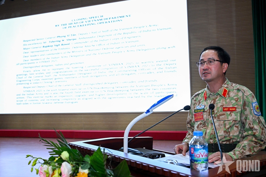 Thượng tướng Phùng Sĩ Tấn bày tỏ tin tưởng thành công của Diễn tập VINBAX 2025 sẽ tiếp tục là tiền đề cho sự phát triển và thành công của các hoạt động diễn tập song phương tiếp theo, là nền tảng quan trọng để Quân đội hai nước đẩy mạnh hơn nữa các hoạt động hợp tác quốc phòng song phương nói chung và hợp tác về gìn giữ hòa bình Liên hợp quốc nói riêng, ngày càng đi vào thực chất, hiệu quả, thiết thực, đa dạng.