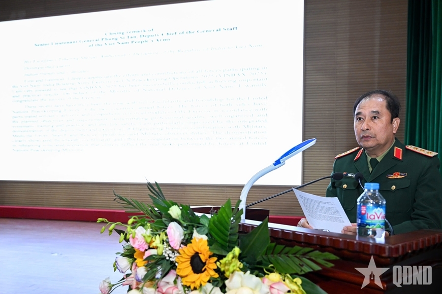Thượng tướng Phùng Sĩ Tấn, Phó tổng Tham mưu trưởng Quân đội nhân dân Việt Nam, Tổ phó Tổ công tác liên ngành, Phó trưởng ban chỉ đạo Bộ Quốc phòng về tham gia hoạt động gìn giữ hòa bình Liên hợp quốc, chủ trì lễ bế mạc.