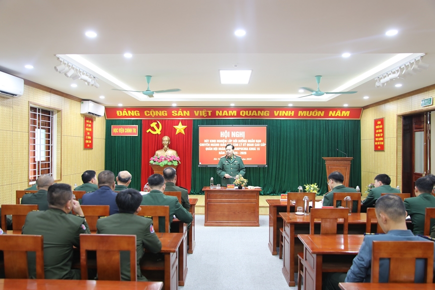 Hội nghị do Thiếu tướng, PGS, TS Hoàng Văn Phai, Phó giám đốc Học viện Chính trị chủ trì. Thiếu tướng Vũ Đức Long, Phó chính ủy Học viện Chính trị dự và phát biểu chỉ đạo. Cùng dự có đại diện các cơ quan chức năng Bộ Quốc phòng Việt Nam, Phòng Tùy viên Quốc phòng Campuchia tại Việt Nam, cán bộ, giảng viên Học viện và toàn thể học viên khóa học.