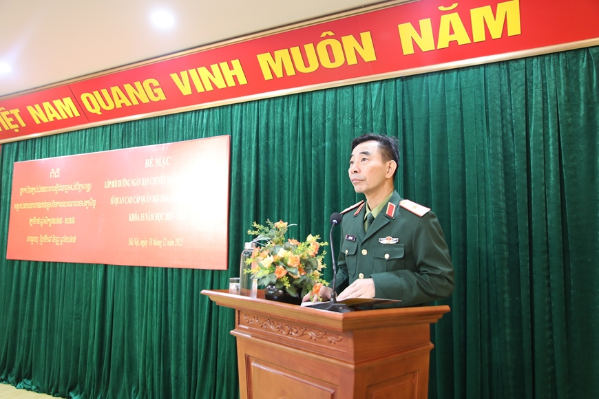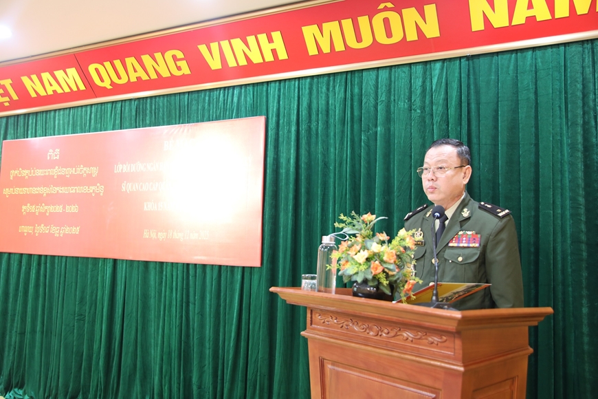 Phát biểu chỉ đạo hội nghị, Thiếu tướng Vũ Đức Long, Phó chính ủy Học viện Chính trị biểu dương tinh thần nỗ lực, cố gắng của các học viên và đánh giá cao trách nhiệm của các cơ quan, đơn vị trong tổ chức, quản lý, phục vụ khóa học. Đồng chí khẳng định, kết quả Lớp bồi dưỡng không chỉ có ý nghĩa về đào tạo, bồi dưỡng cán bộ, mà còn là minh chứng sinh động cho mối quan hệ đoàn kết, hữu nghị truyền thống, hợp tác toàn diện, bền vững lâu dài giữa hai Đảng, hai Nhà nước, hai Quân đội Việt Nam-Campuchia.