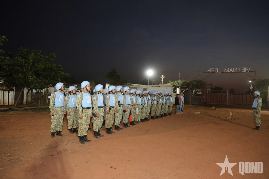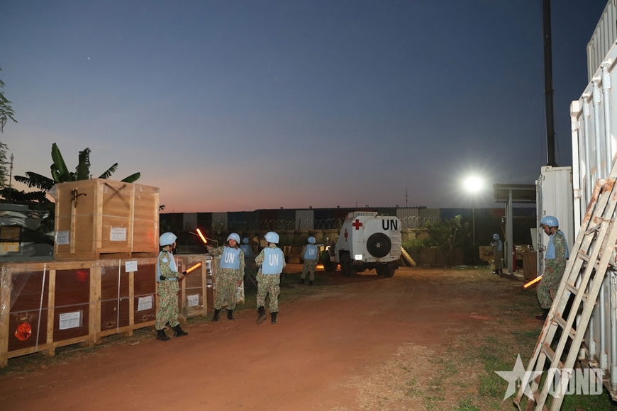 Huấn luyện ứng phó tình huống chống xâm nhập ban đêm, các thành viên đã diễn tập các phương án đối phó với tình huống đối tượng lợi dụng đêm tối cắt rào lẻn vào doanh trại hòng trộm cắp tài sản. Hoạt động này nhằm củng cố khả năng hiệp đồng tác chiến và phản ứng nhanh, kịp thời giữa các tổ, đội bảo vệ của đơn vị cũng như với các lực lượng bảo vệ của phái bộ.